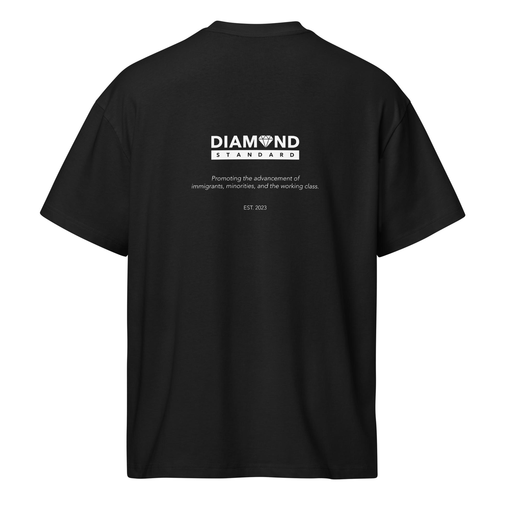 Founded in New York City, Diamond Standard is a platform built on promoting the advancement of immigrants, minorities, and the working class. Step into a new age for NYC with pride, wearing our mission statement proud and with purpose on these bulkier box tees. *ONLY THE FIRST 25 UNITS WILL BE MADE*